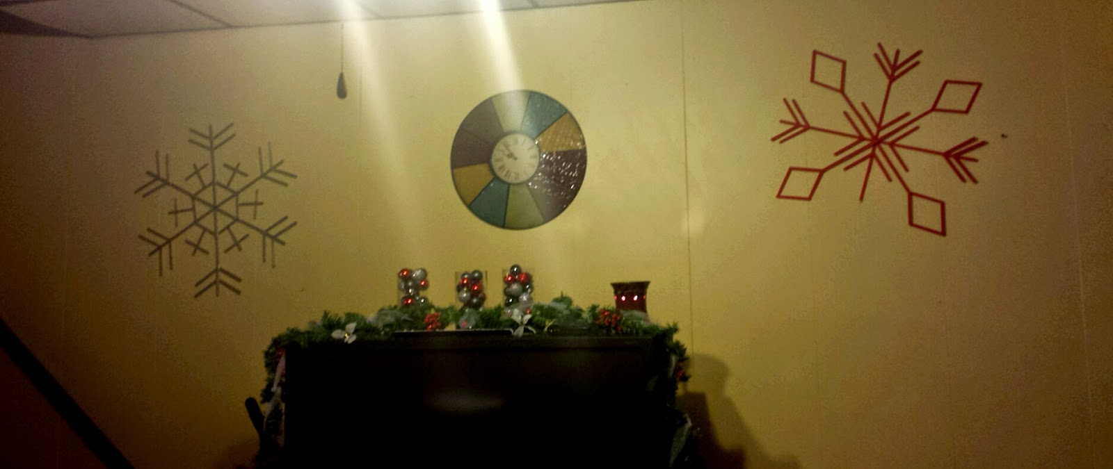 Then on each side of the TV, we have 2 of our 4 homemade snowflakes that we created last year as well. Just Popsicle sticks and paint. (it was NOT as easy as it looks)